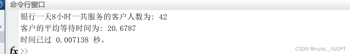 disp(['银行一天8小时一共服务的客户人数为: ',num2str(n)])