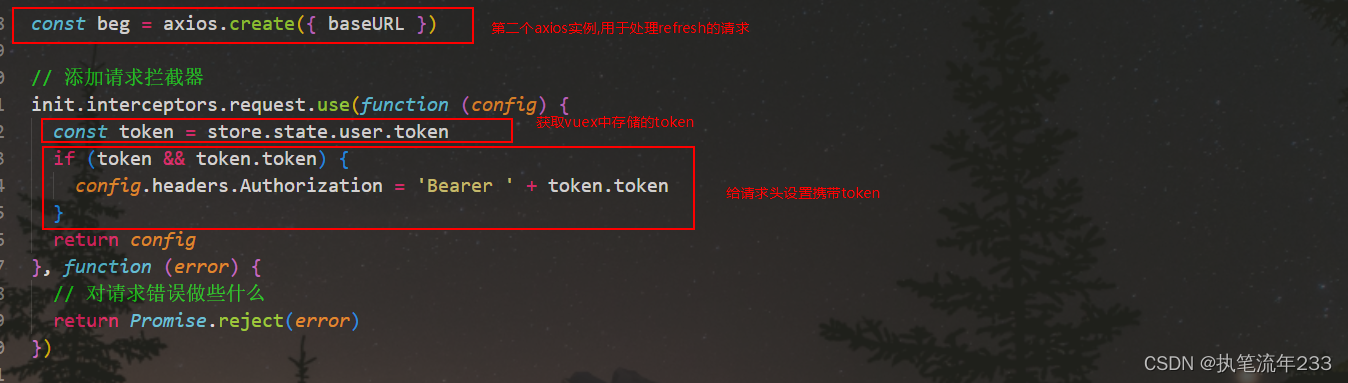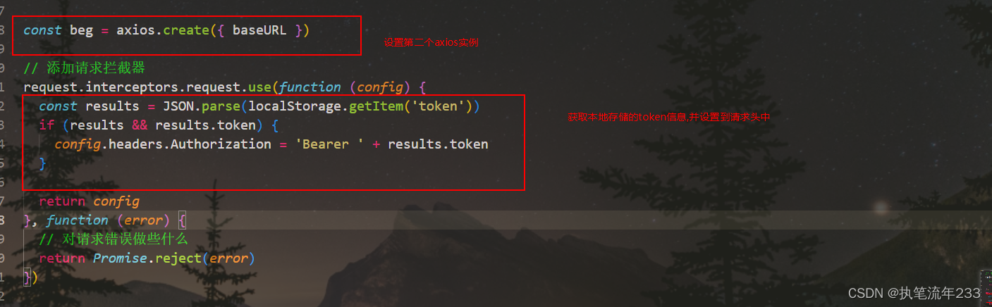1.先搭好axios骨架,以及请求拦截器与响应拦截器