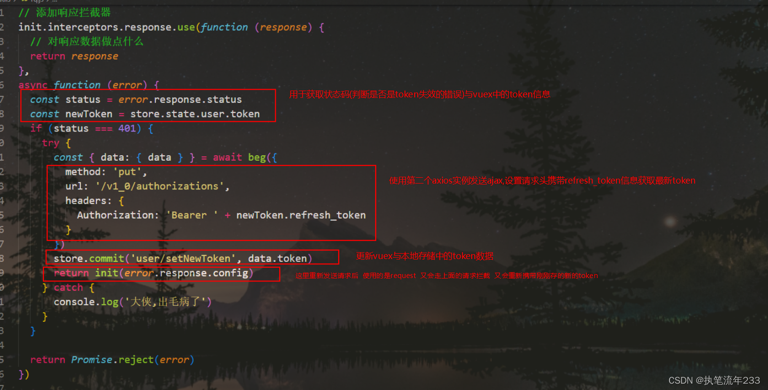 核心代码 -- 响应拦截器