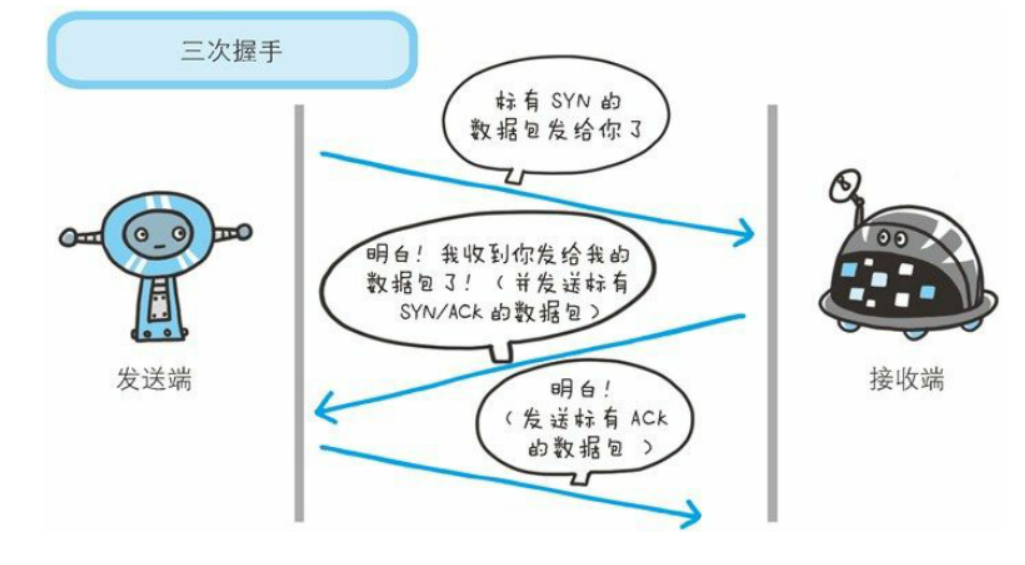 接收端传回发送端所发送的ACK是为了告诉客户端,我接收到的信息确实就是你所发送的信号了,这表明从客户端到服务端的通信是正常的。而回传SYN则是为了建立并确认从服务端到客户端的通信。”