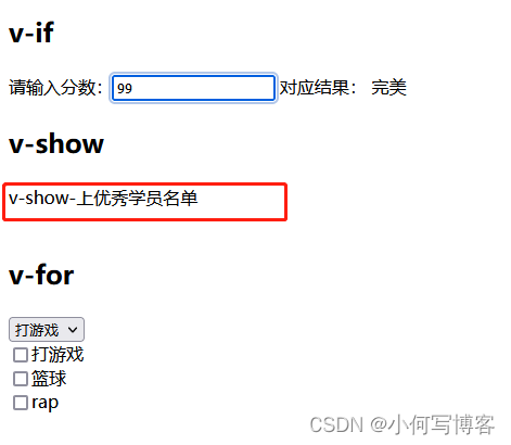 <div v-show="socre>90">v-show-上优秀学员名单</div>
