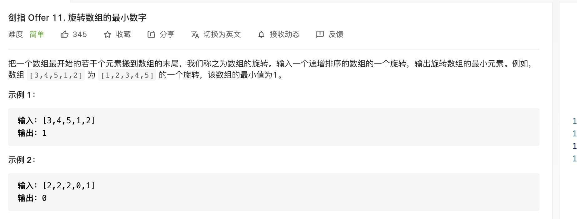 #如果中间的比最右边的小比如3 4 1 2 3 3那不用犹豫,最小值一定在左半边