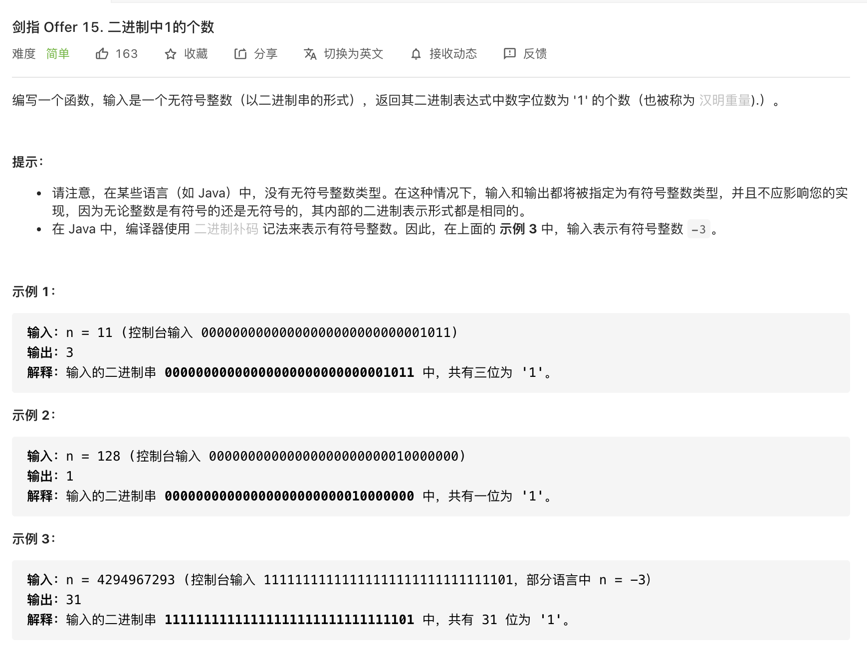 return dp[-1]6.二进制中1个数