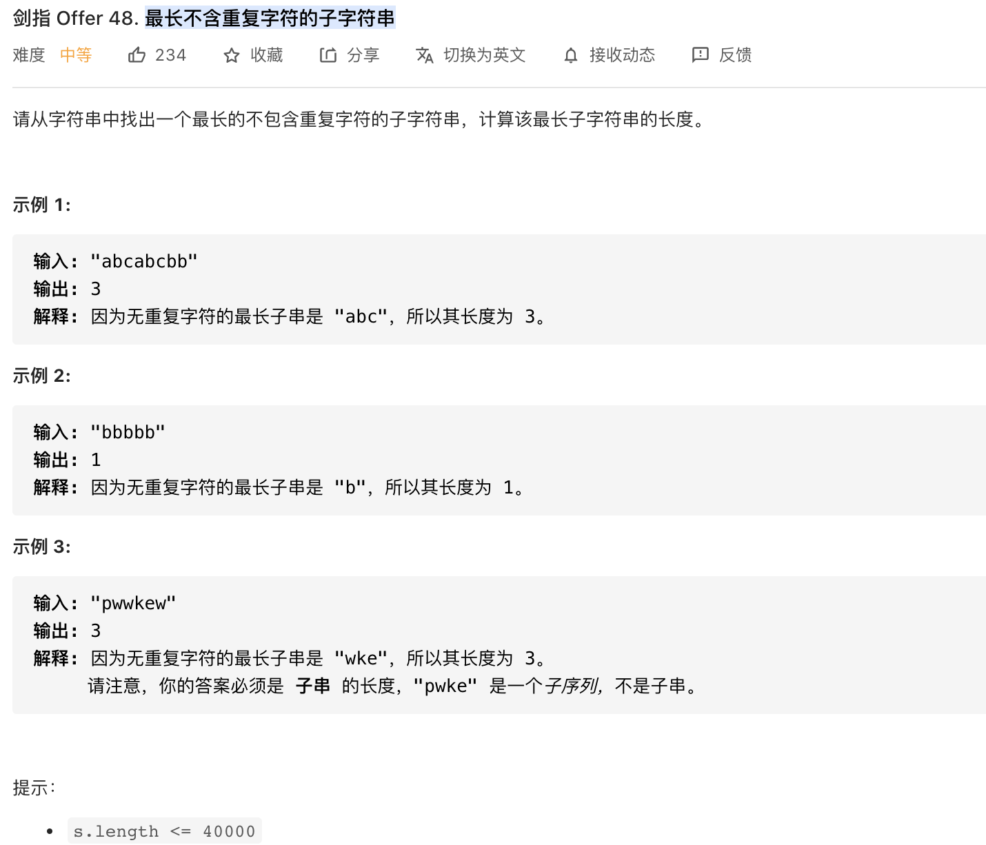 此题以前总用双指针加数组判重做,属实有点low。这回采用动态规划。