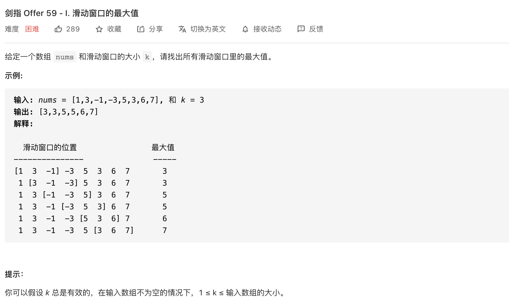 此题与最小值有异曲同工之妙,而且还结合了”滑动窗口最大值“的思路。