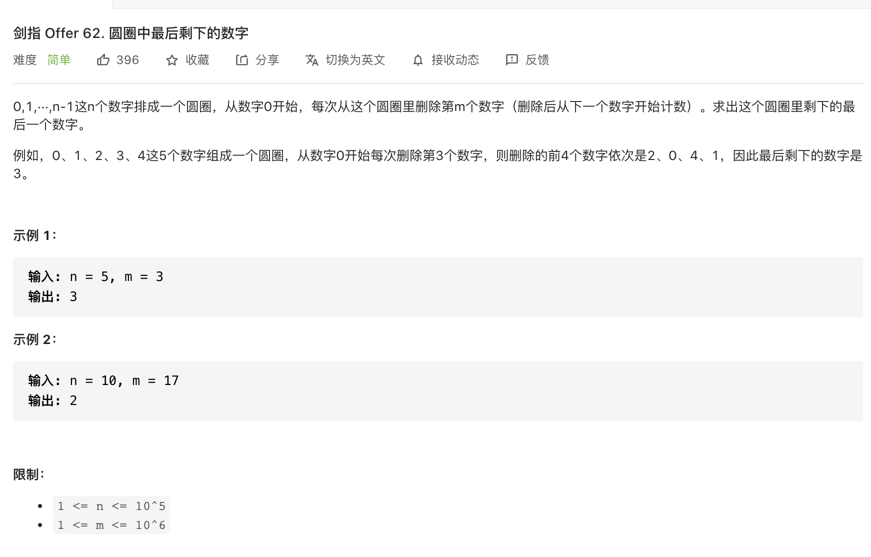 def lastRemaining(self, n: int, m: int) -> int: