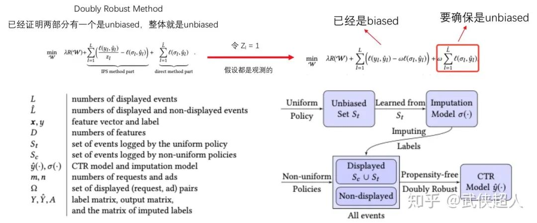 Doubly Robust Model:融合了上述两个模型,可以证明如果imputation和propensities中有一个是准确的,整体就是unbiased