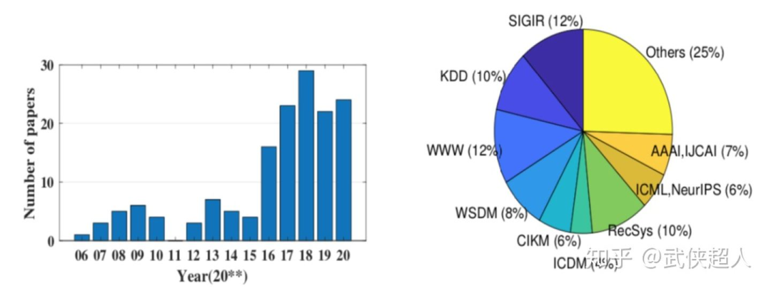 学术界上,比如2020年的RecSys和SIGIR都有专门针对Bias和Debias的专题讨论,也有人专门统计了这个方向在最近几年的一些知名会议的发文和占比
