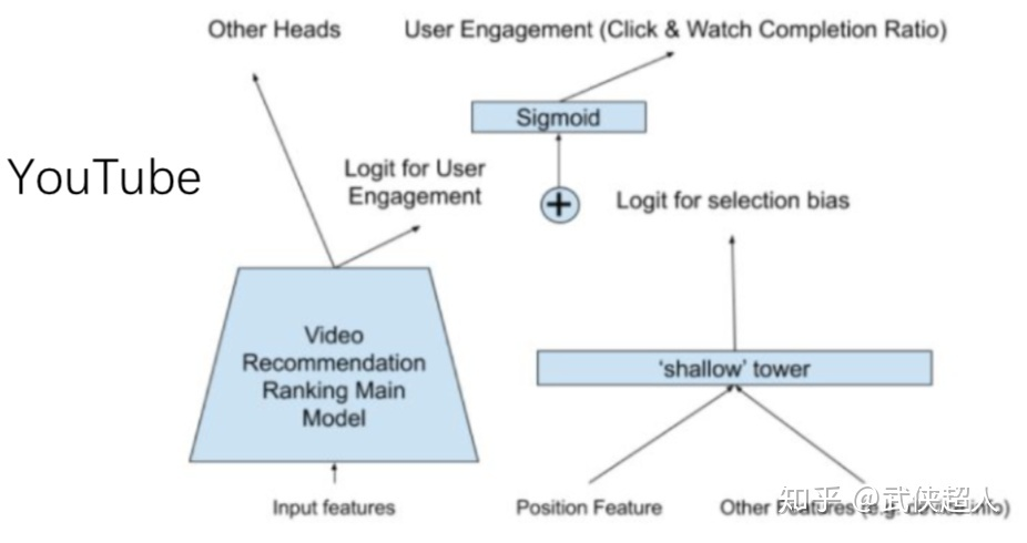 单独建模 Position Bias,但预测时候还是只用Ranking model,2019年的RecSys有两篇文章都是用的这个思路
