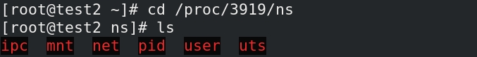 进入到进程3919目录下的ns文件夹下