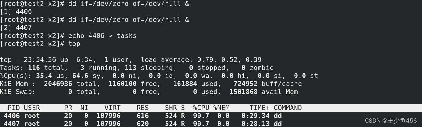 (3)创建两个进程并用top查看进程,将进程4406加入task