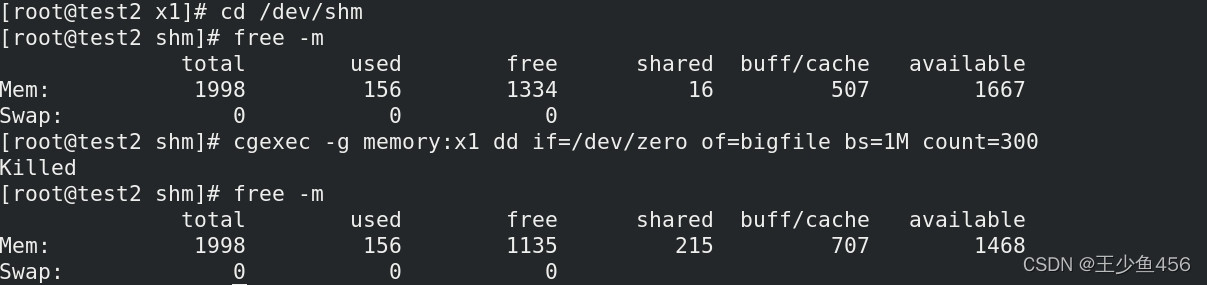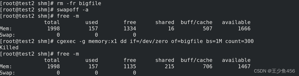 发现没有出错,是因为还开启着swap分区,其中有100M使用的是swap分区的空间
