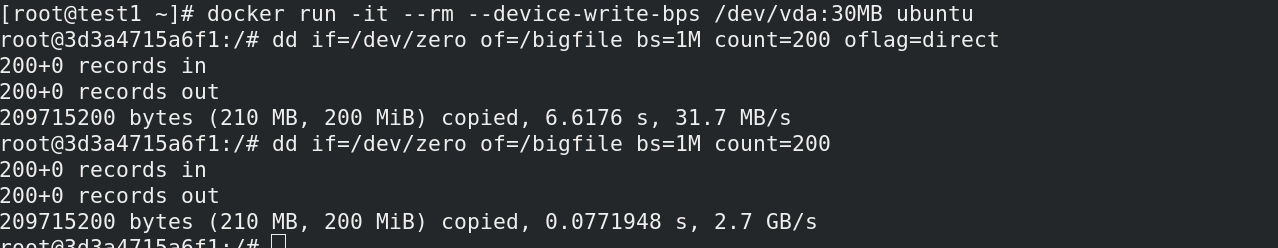 –device-write-bps /dev/vda:30MB:限制写设备的bps速度为30M。