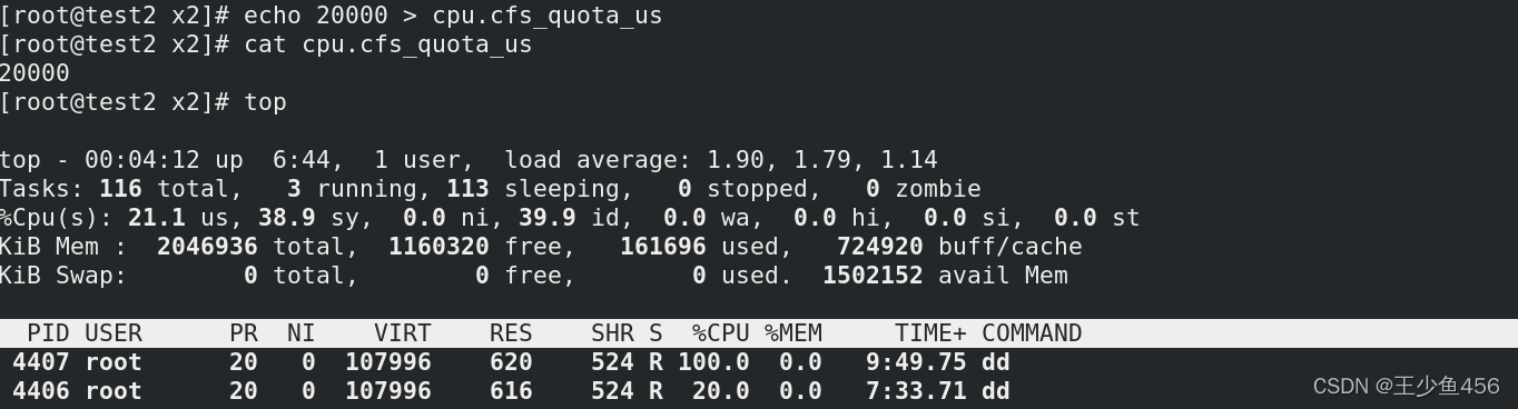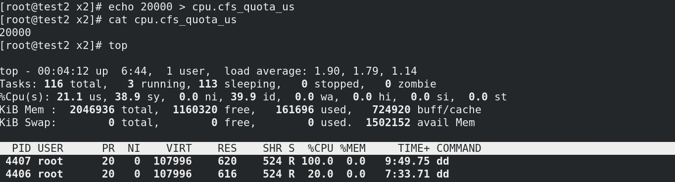 (3)给定4406进程1/5的配额(4406进程写在tasks内)