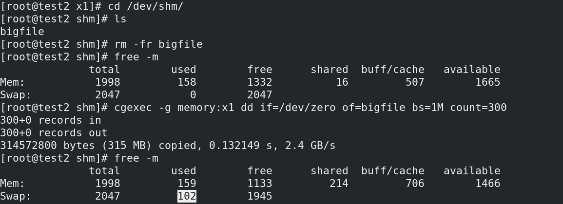 (5)切换到/dev/shm/目录下,向里面拷贝一个300M大小的文件