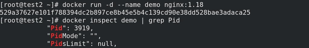 启动一个demo容器,查看pid为3919