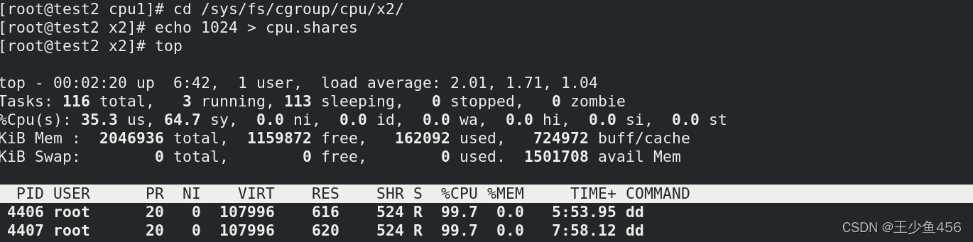 (2)显示进程cpu总配额
