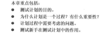 1. 测试计划只是制作产品的详细计划过程的副产品,重要的是计划过程。而不是产生的文档。因为文档通常会成为“空架子”,以后不会有人看,但是如果计划工作的目标从建立文档转移到建立过程,从编写测试计划到计划测试任务,就不存在空架子问题了。