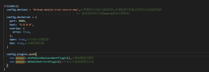 if(isDev){config.devServer = {port: 8000,host: '0.0.0.0',overlay: {erros: true,}}}