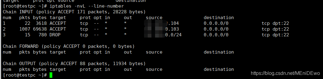 iptables -A INPUT -s 192.168.1.0/24 -p tcp --dport 22 -j DROP ##拒绝ip为192.168.1.0的地址访问22端口