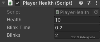 在Player中添加一个新脚本叫PlayerHealth,然后给它设置参数以及碰撞方法