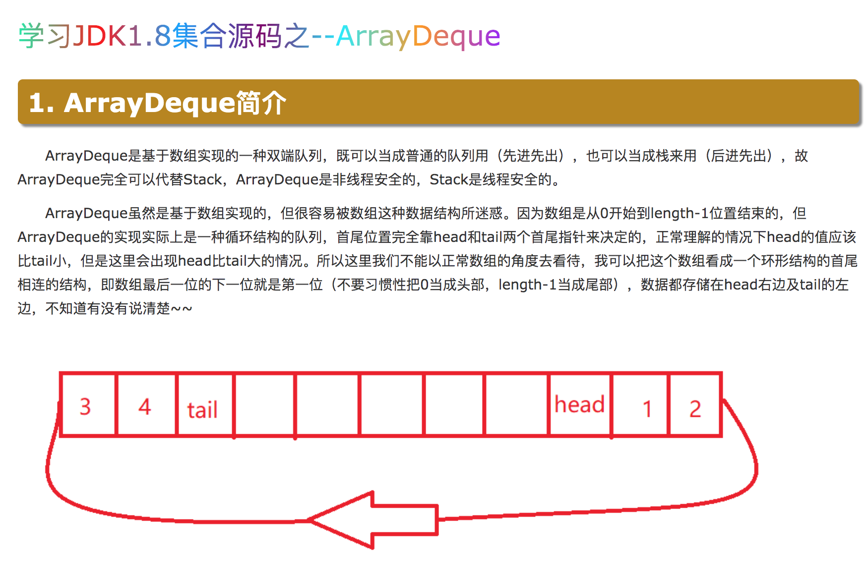 ArrayDeque是一个数组实现的双端队列,它不是线程安全的,并且不允许操作null值,把他当做栈使用时,要比Stack(Stack是线程安全的,使用synchronized修饰方法)更高效,当队列使用时,要比LinkedList(使用链表实现)更高效。