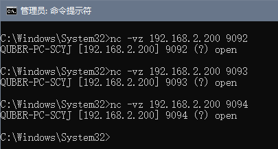 然后我们就可以使用如下命令来测试3个Kafka服务是否已启动,如果为open则代表启动成功