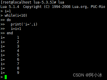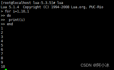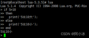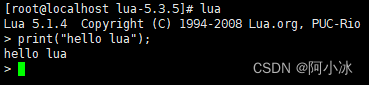[root@localhost lua-5.3.5]# lua Lua 5.1.4 Copyright (C) 1994-2008 Lua.org, PUC-Rio >