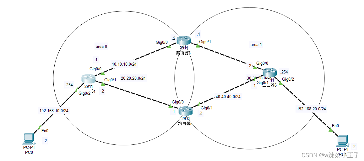 类型1:路由器的LSA,主要是由区域内的路由器发出(内部路由器)、