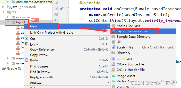 </LinearLayout>4、新建4个引导页。这里就不需要新建空Activity了,按照下面图片的步骤新建。