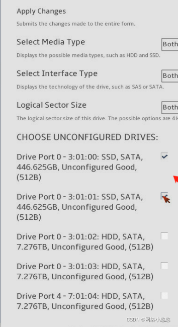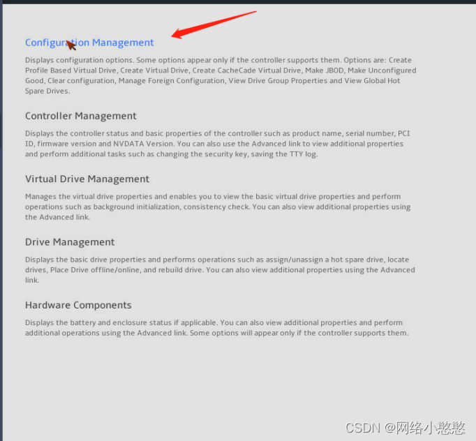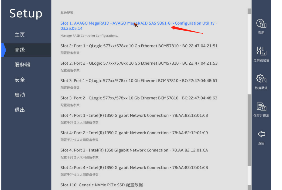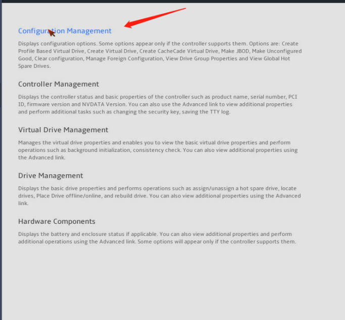 四、在高级里面进入配置RAID继续往下我这边系统盘做的RAID1,缓存及数据盘做的直通,在配置管理一步步往下