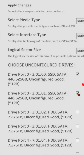 4、系统盘做raid1缓存数据盘做JAOD直通