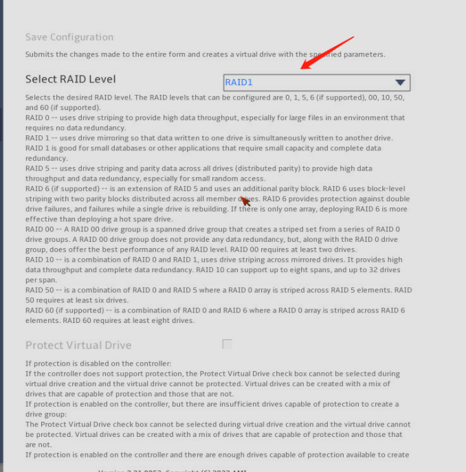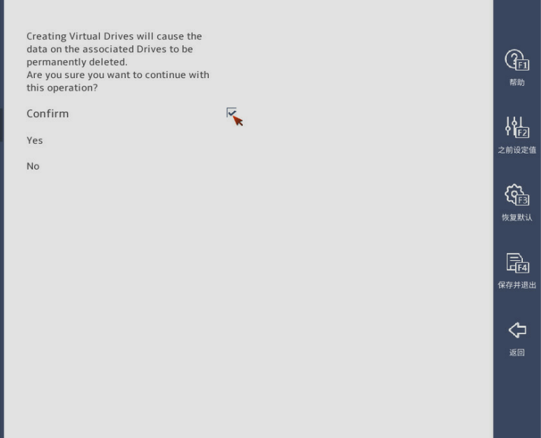 七、最后别忘记保存,做其余raid按此步骤即可 (新款服务器图形化界面比文本稍微不适应但是简单化很多)