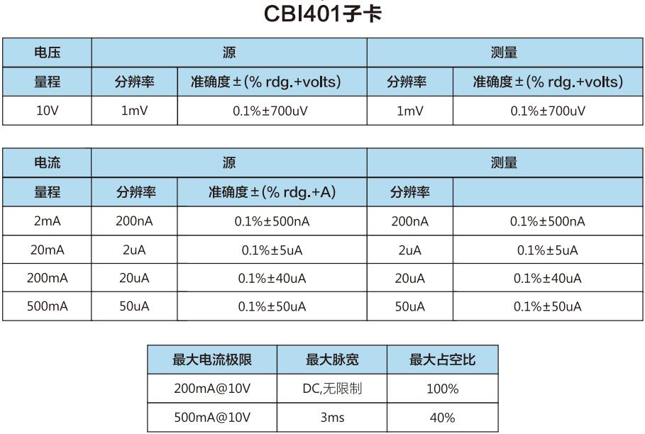 1*10卡式插卡式主机1010C + 10*单卡4通道源表子卡CBI401/402 = 40 ch