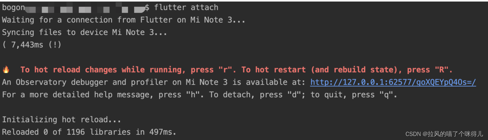 然后执行flutter attach 命令,会出现如下