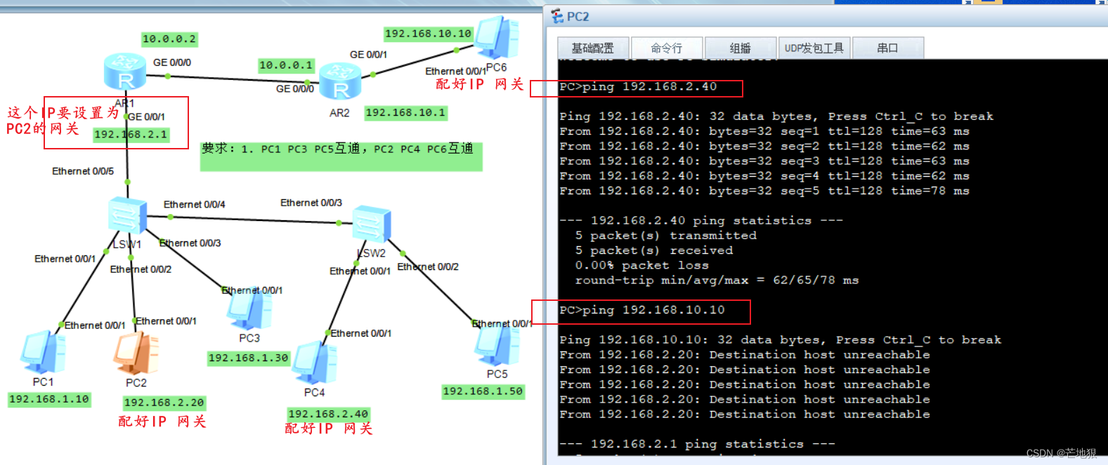 ip route-static 192.168.2.0 255.255.255.0 10.0.0.2