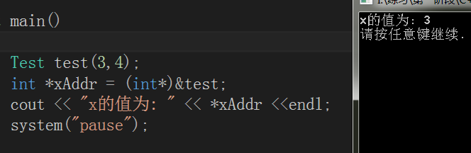int *xAddr = (int*)&test; //取出x的地址,也是对象首地址