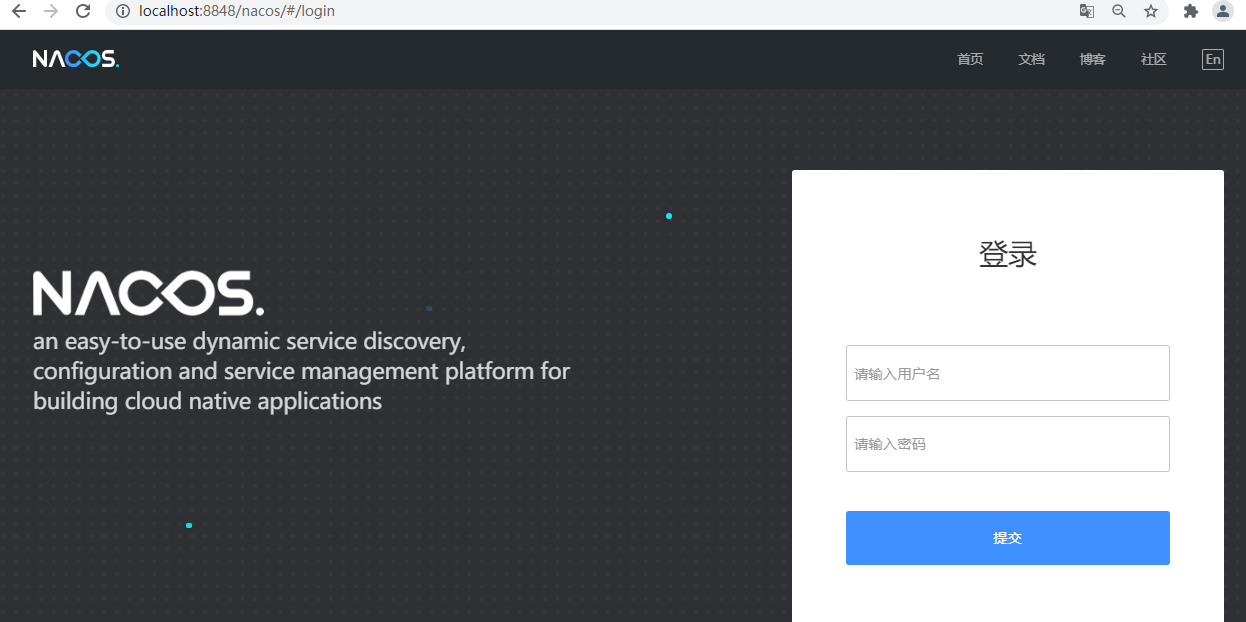 打开浏览器,输入http://localhost:8848/nacos地址,出现如下登陆页面: