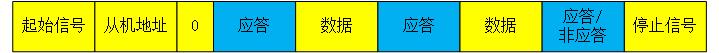 I2C通信时,每个字节长度8位,先传输最高位,后传输低位,发送器发送完一个字节8位数据后,接收器必须发送1位应答位(低电平)回应
