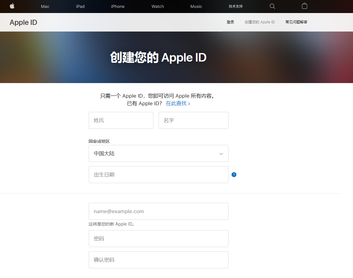 1、点击苹果id注册地址,输入相关信息注册,如果已经有苹果账号了看第二步,