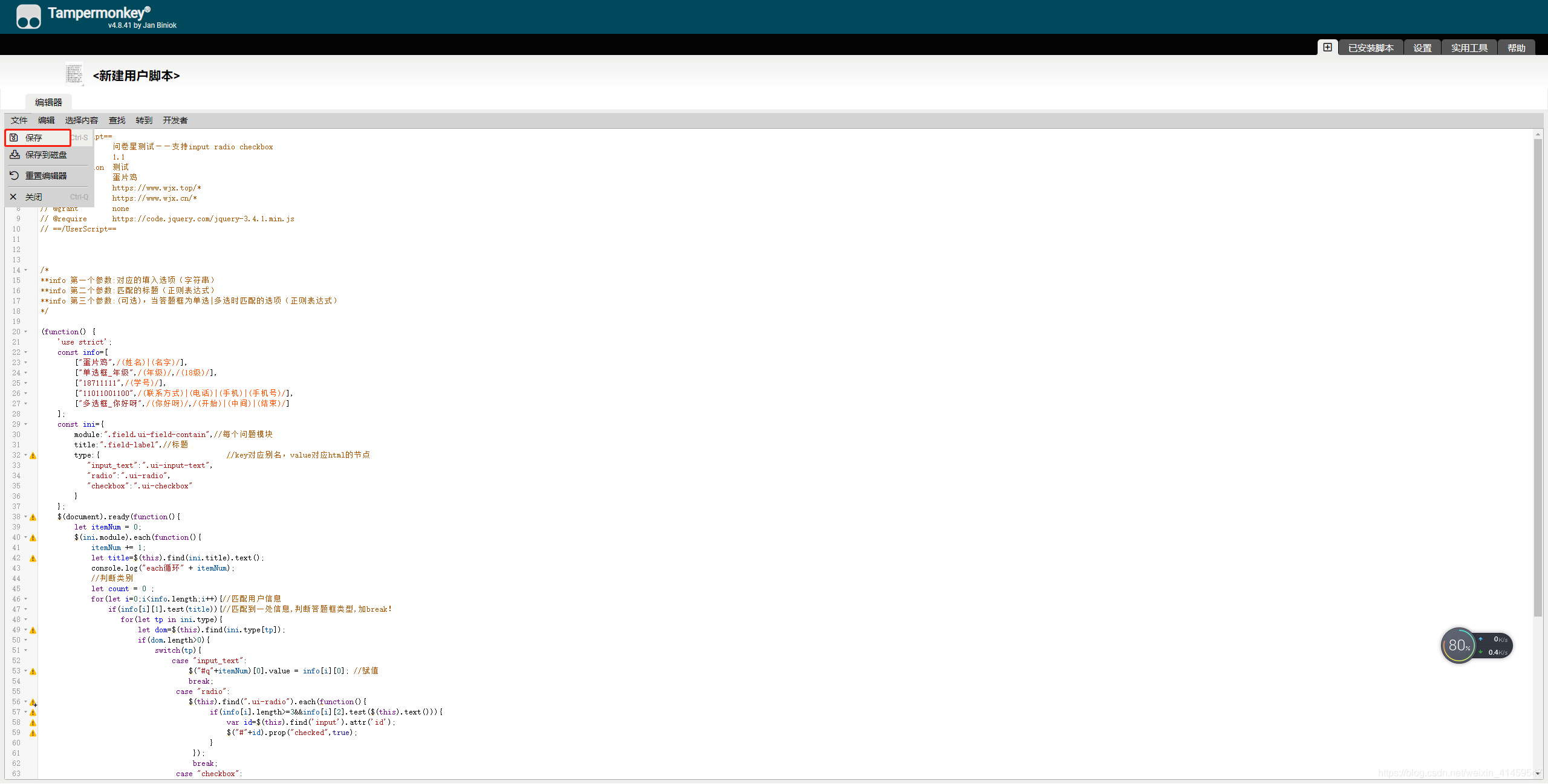 })();⑥在“添加至新脚本”页面中,点击左上角的保存按钮