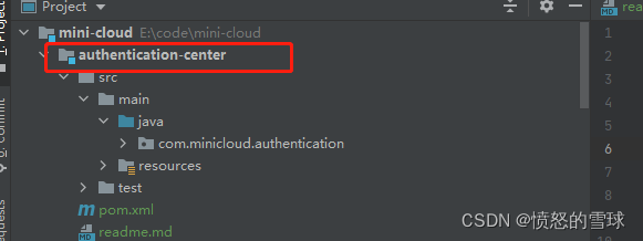 我们在mini-cloud 目录下新建一个module ,起名为authentication-center 即认证中心,这个专门用来认证获取access_token ,reflush_token ,check_token 等,创建完module之后,我们将该服务集成进入到spring cloud nacos 体系