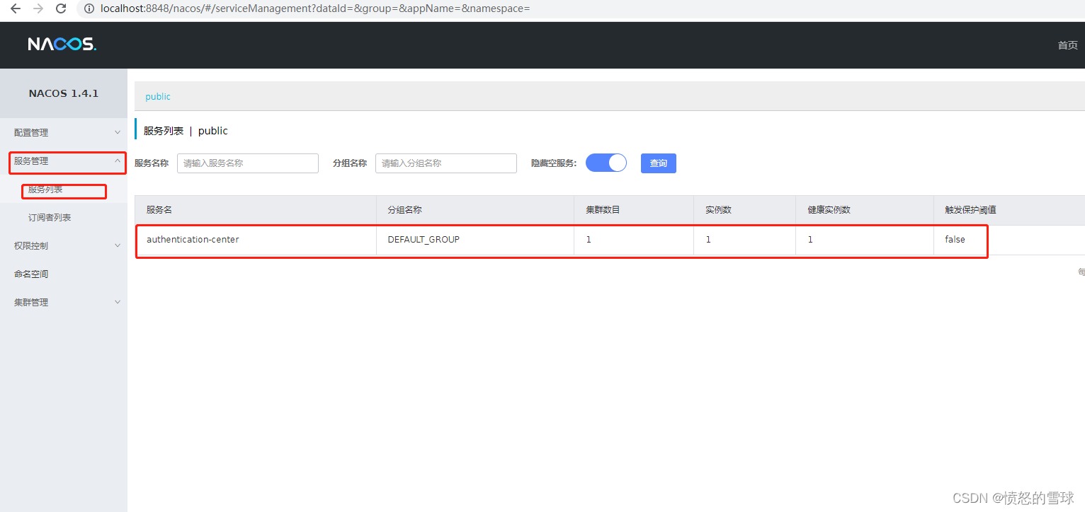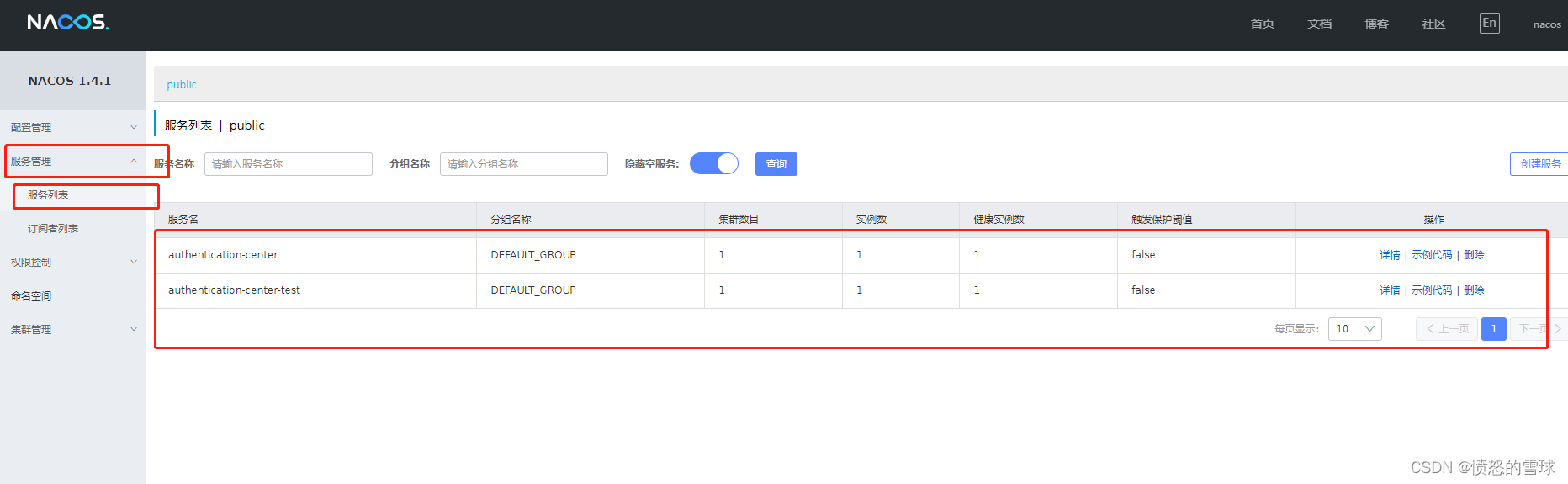 进入nacos 控制台查看 http://localhost:8848/nacos/