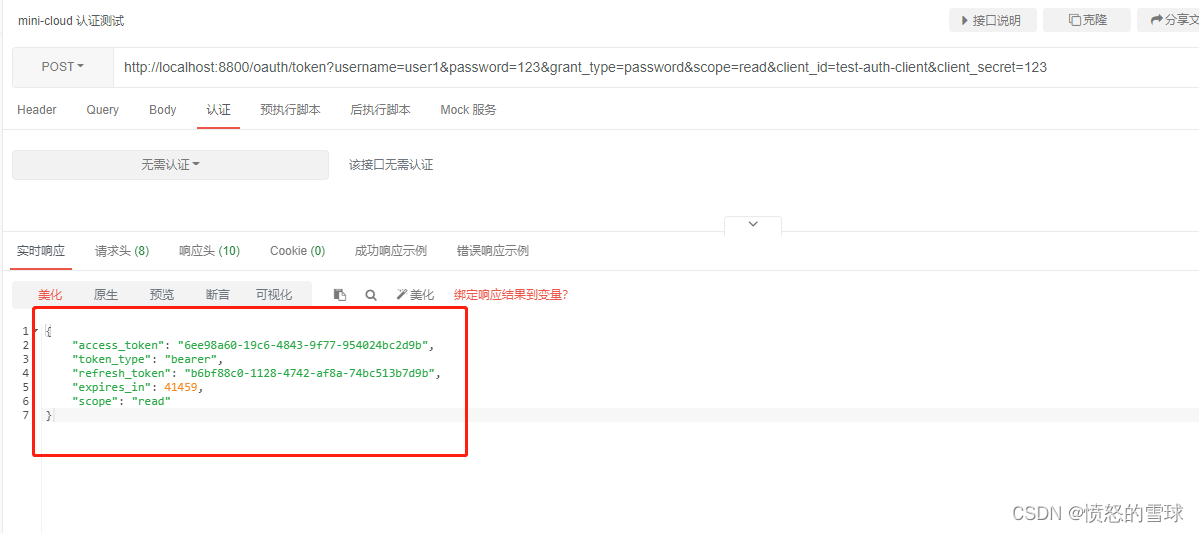 这次正常可以访问资源的url了 ,注意access_token前要加bearer