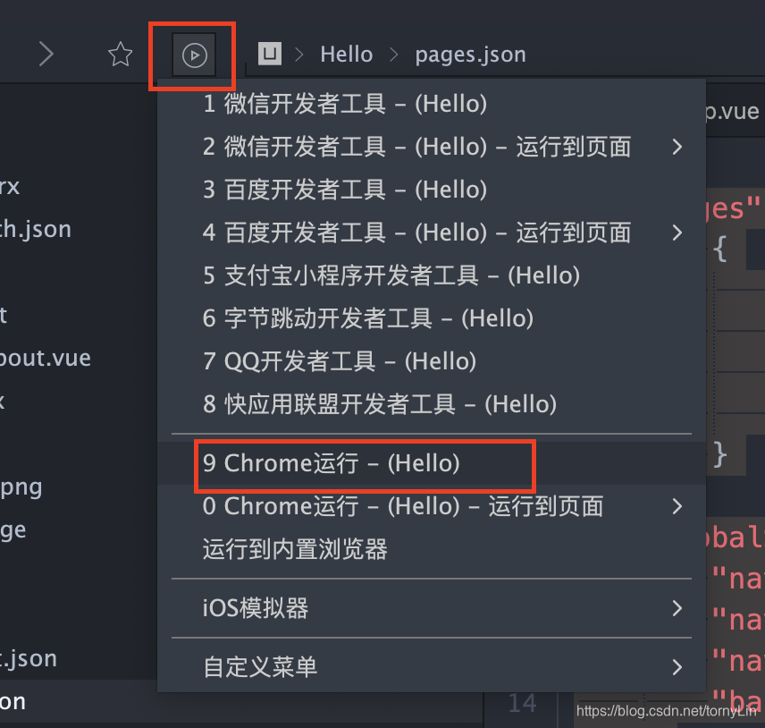 点击HBuilderX左上角的运行按钮,选择编译设备,例如chrome浏览器。
