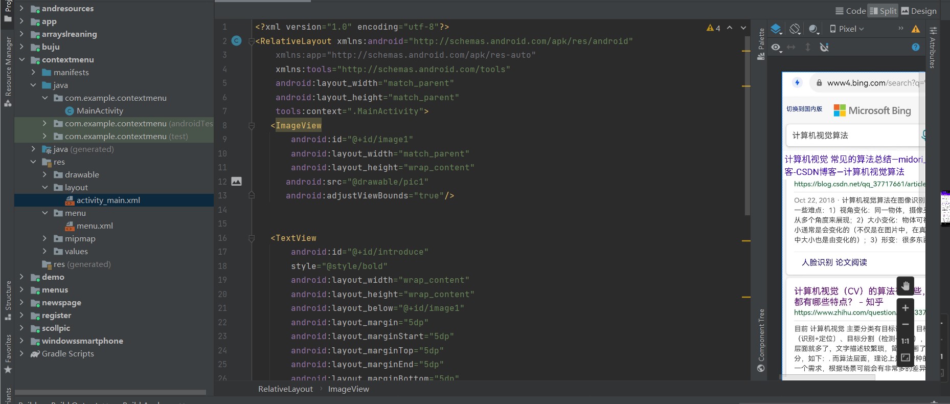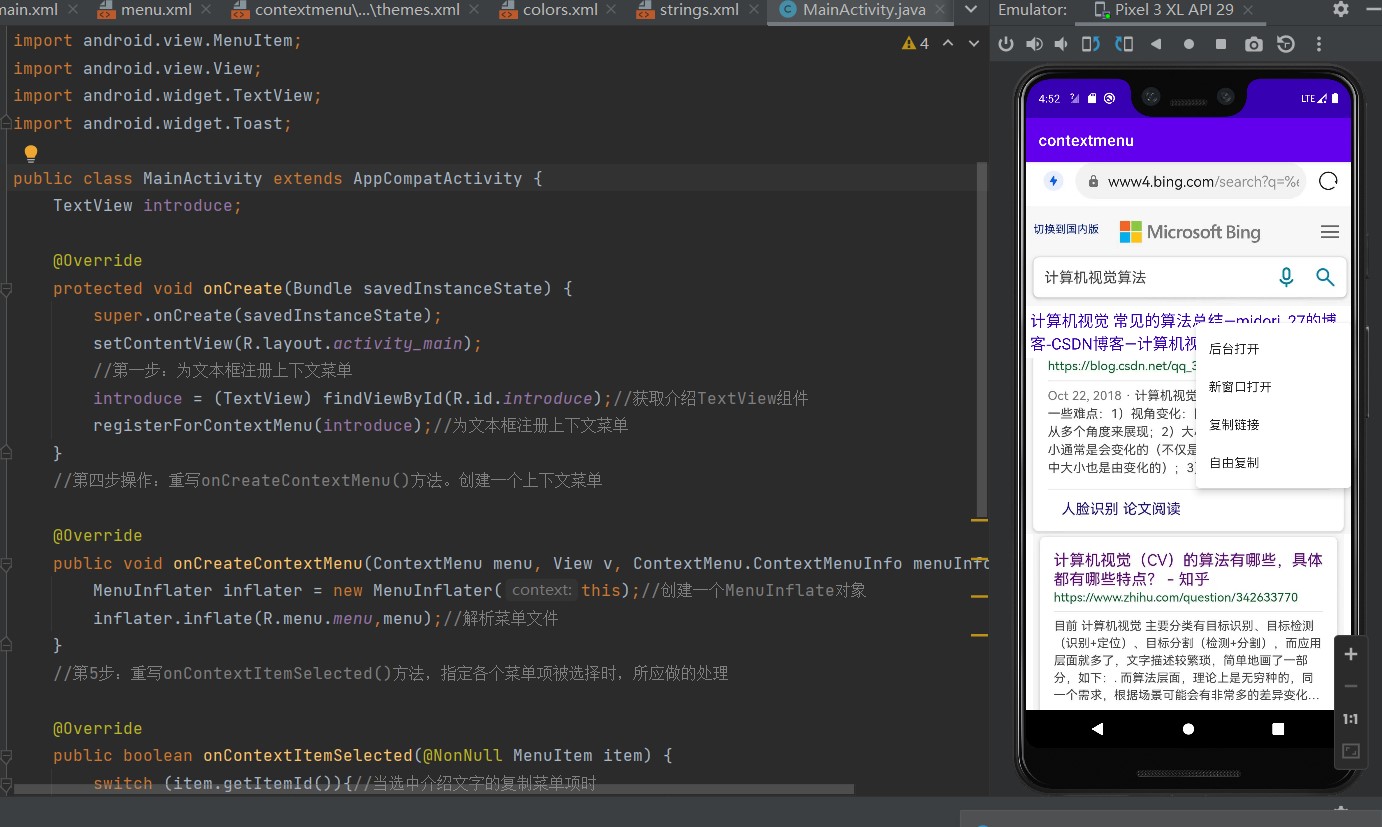 registerForContextMenu(introduce);//为文本框注册上下文菜单