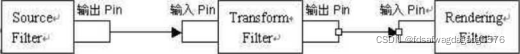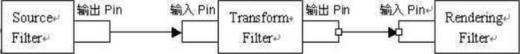 Filter是COM组件. FIlter实现流水线。pin连接各个filter,pin分成输入和输出两种