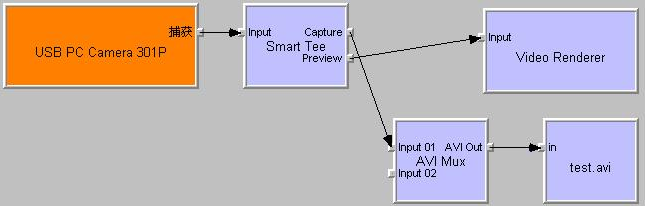 pGraph->Connect(mOut,mIn); //Smart Tee’s Preview Pin à Video Renderer Filter’s Input Pin这样,一个完整的视频采集图表管理器就构造完成了。