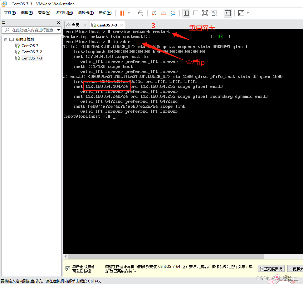 service network restart3:查看ip