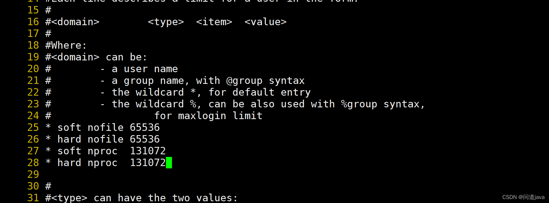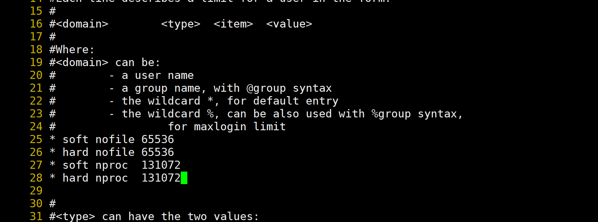 28 * hard nproc 131072